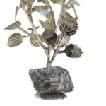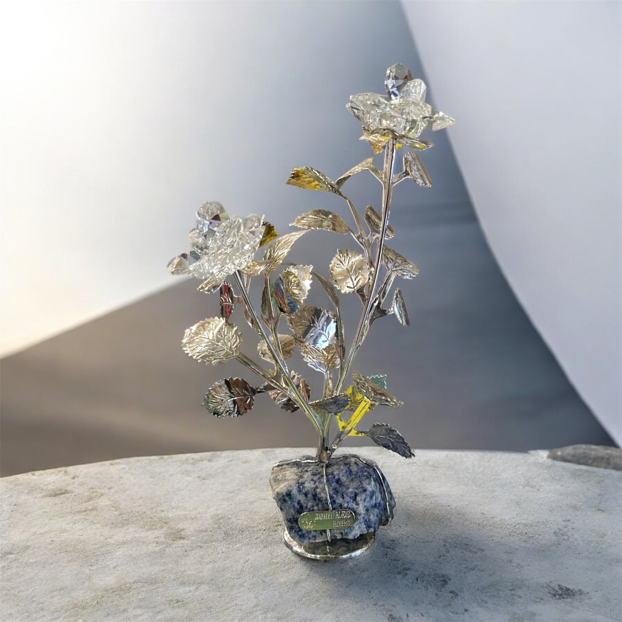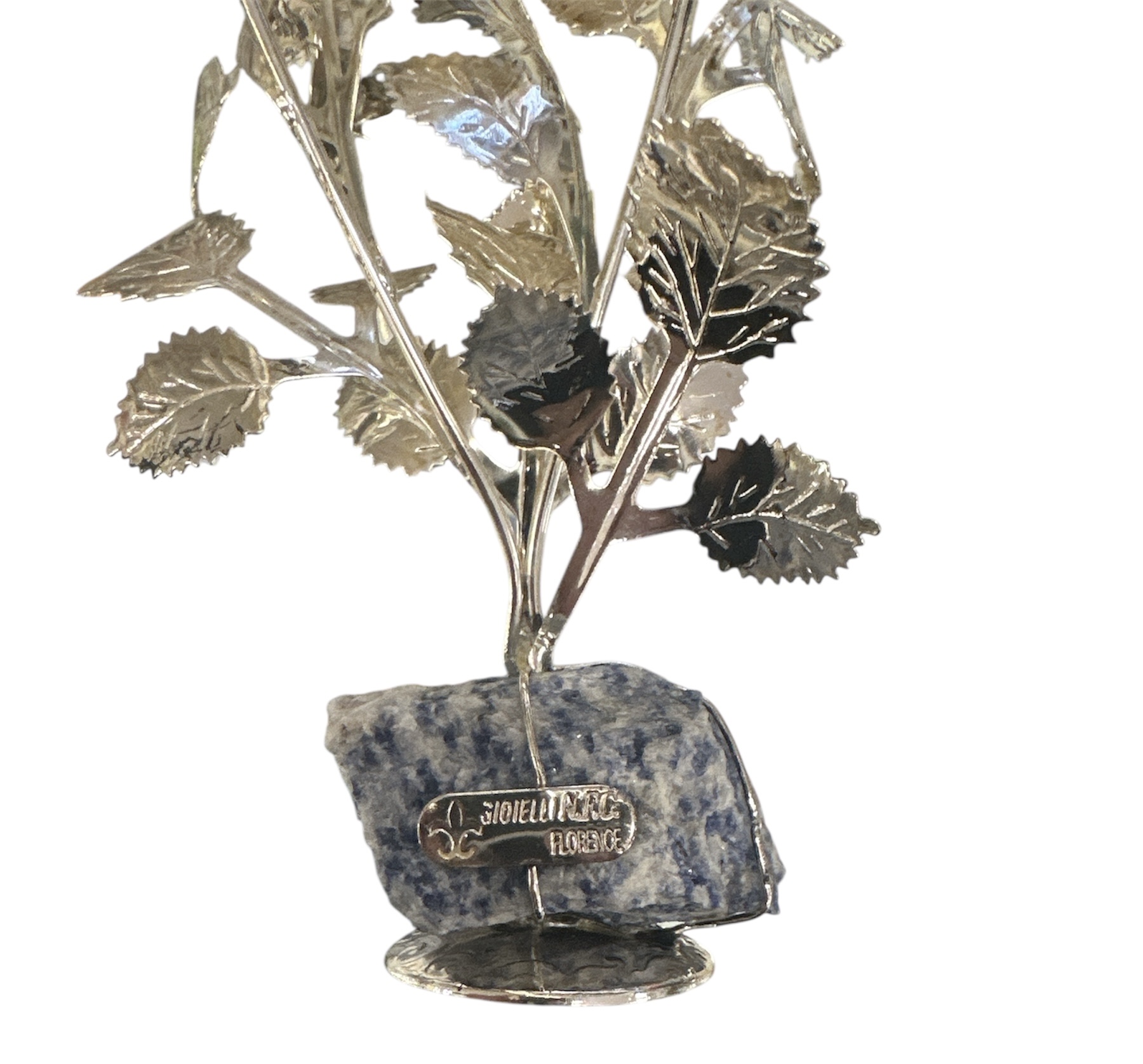 Collezione fiori in cristallo verde su Fuxite composta da 4 pezzi. Prodotto artigianalmente da maestri argentieri fiorentini con materiale di prima qualità.